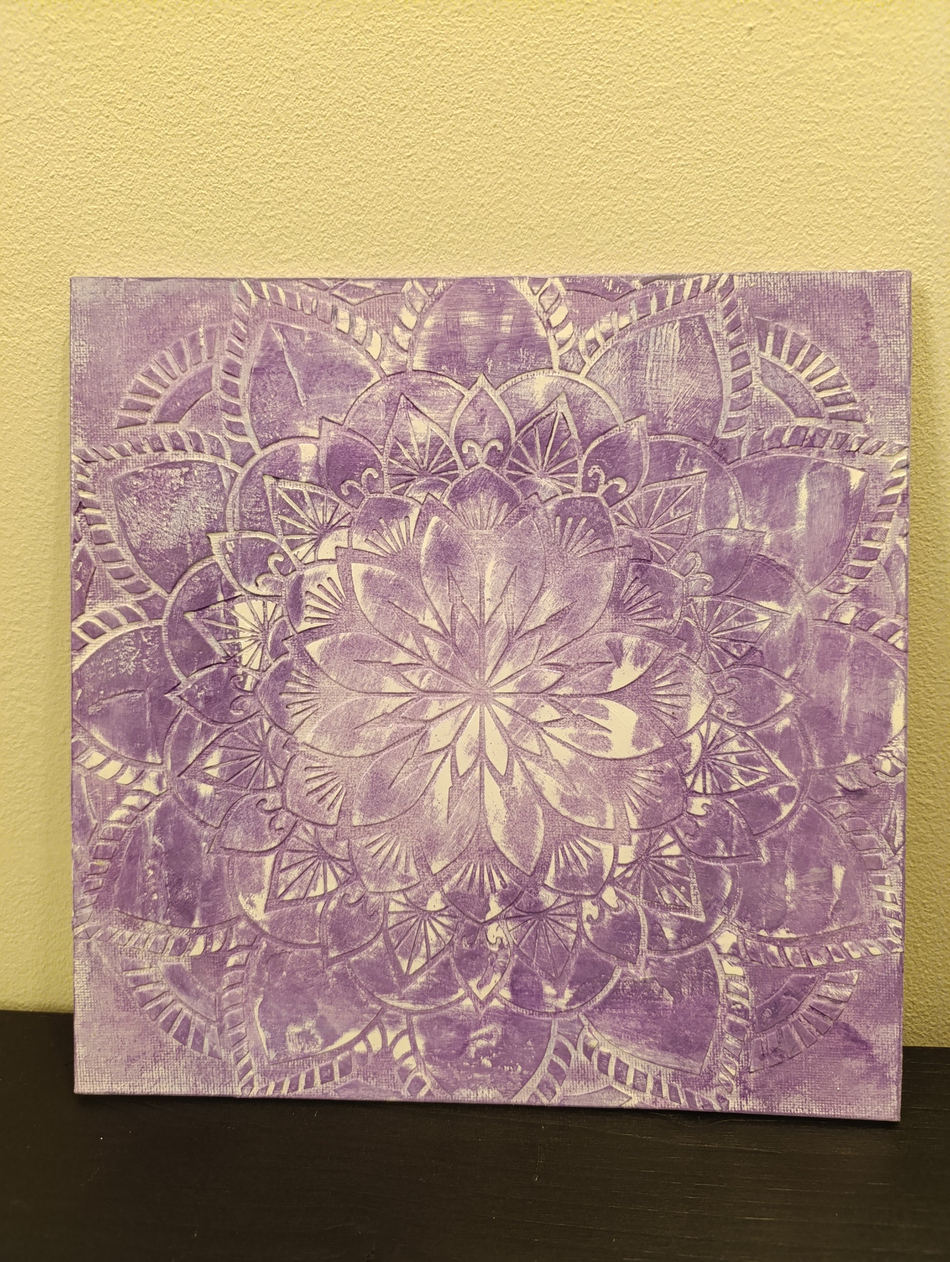 Il colore dominante è un intenso viola, tonalità legata alla spiritualità, alla creatività e alla trasformazione. Ideale per ambienti rilassanti, spazi meditativi o angoli creativi.
